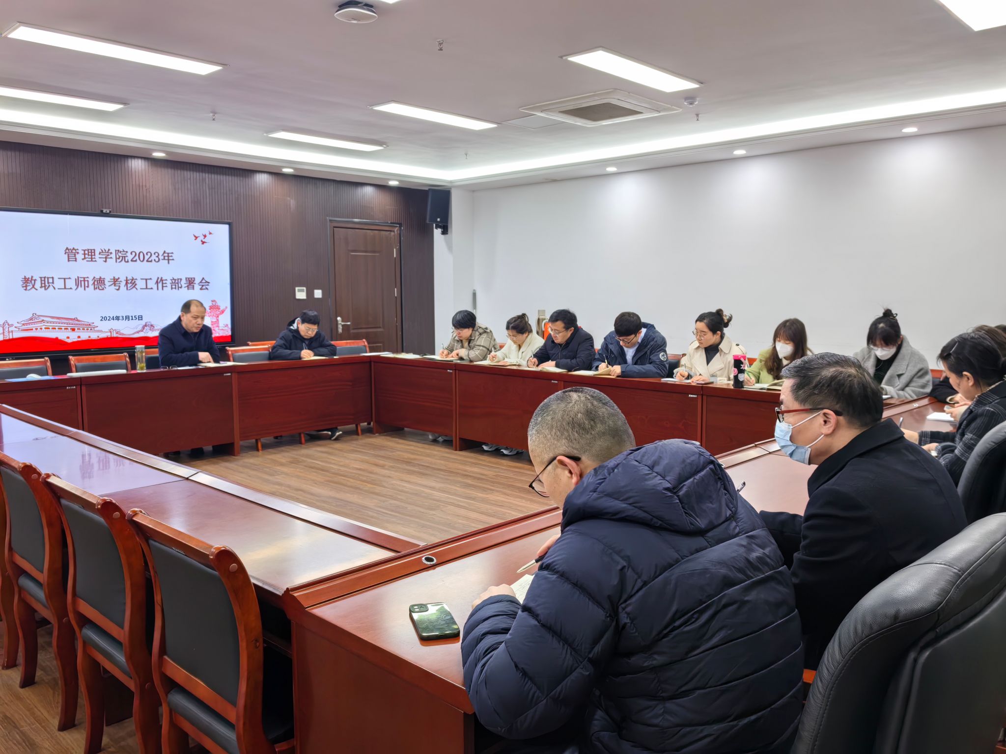3月15日上午,管理学院在西附楼225会议室召开2023年教职工师德考核工作部署会。学院党政主要领导及全体系室主任、辅导员参加会议。会议由学院党委书记丁景良主持。