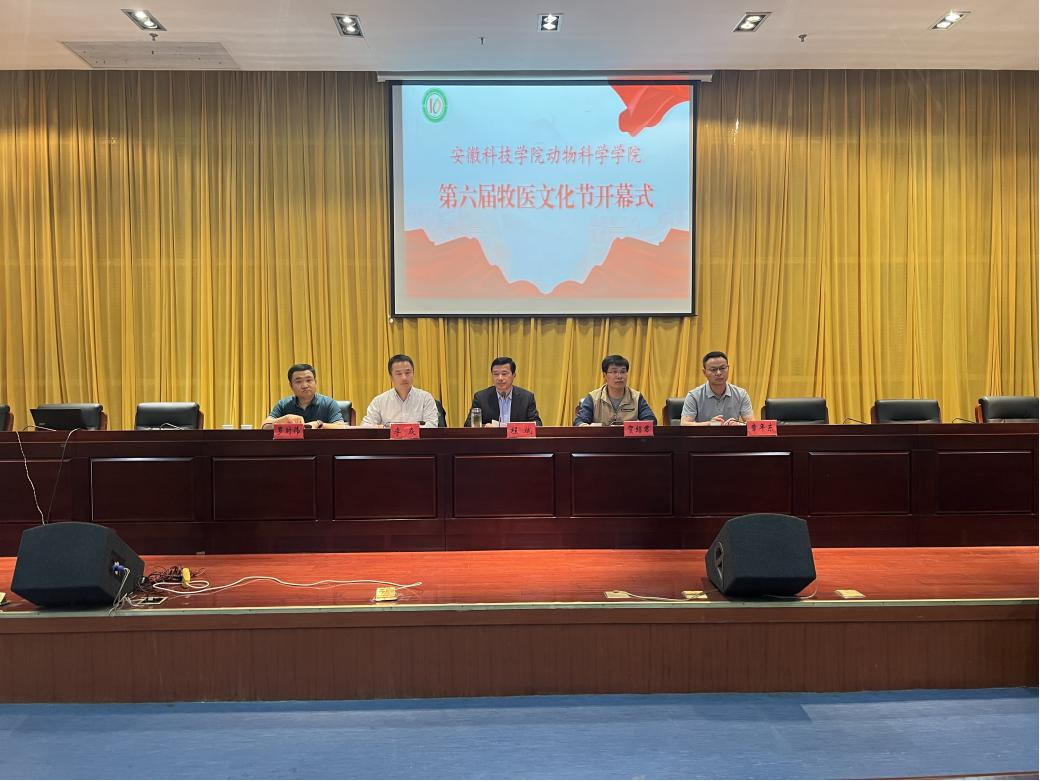5月8日下午,动物科学学院在新图书馆二楼报告厅举办第六届牧医文化节开幕式,旨在引领动科学子以强农兴农为己任,弘扬学农爱农的精神。党委委员、副院长贺绍君,党委委员、团委书记李焱,安徽好尔斯农业科技股份有限公司董事长章年东,安徽乐承控股有限公司董事长罗时伟以及各友好合作企业代表出席开幕式,300余名师生代表、十佳大学生获奖者和团内表彰获得者代表参加开幕式。开幕式由动物科学学院党委书记、副院长程斌主持。
