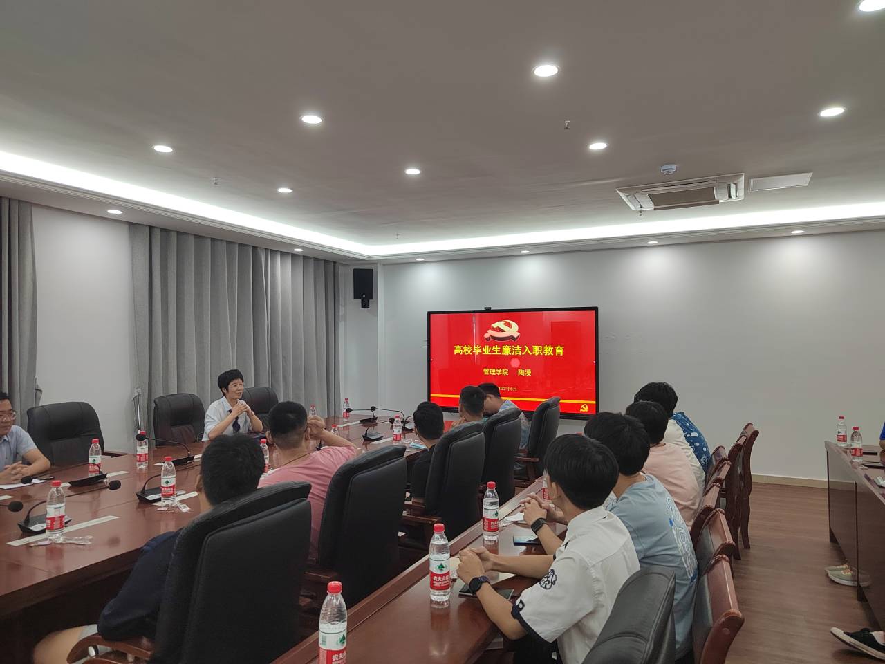 为提升2022届毕业生的廉洁从业及规矩意识,近日,管理学院党委副书记陶漫老师在西附楼317会议室为学院2022届本科毕业生做了题为“树牢廉洁观念,护航精彩人生”的廉洁入职专题讲座,学院专职辅导员及2022届在校毕业生代表参加会议。