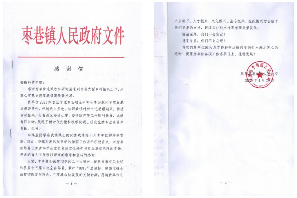 为深入贯彻落实习近平总书记关于志愿服务重要指示精神和乡村振兴战略,践行全国农科研究生志愿服务联盟宗旨,引导农科研究生积极投身基层一线挂职锻炼,服务地方经济发展,2022年10月,应凤阳县枣巷镇人民政府邀请,我校决定派驻研究生到基层挂职锻炼。管理学院2021级研究生李远航看到消息后,第一时间与导师联系,主动请缨,申请到乡村振兴一线锻炼自己。