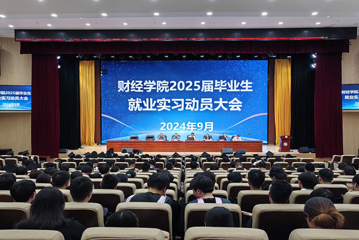 9月18日下午,财经学院在龙湖校区东附楼报告厅召开2025届毕业生就业实习动员大会。学院党政领导班子、全体毕业班辅导员、2025届毕业生参加会议。会议由学院党委副书记、纪委书记耿广汉主持。