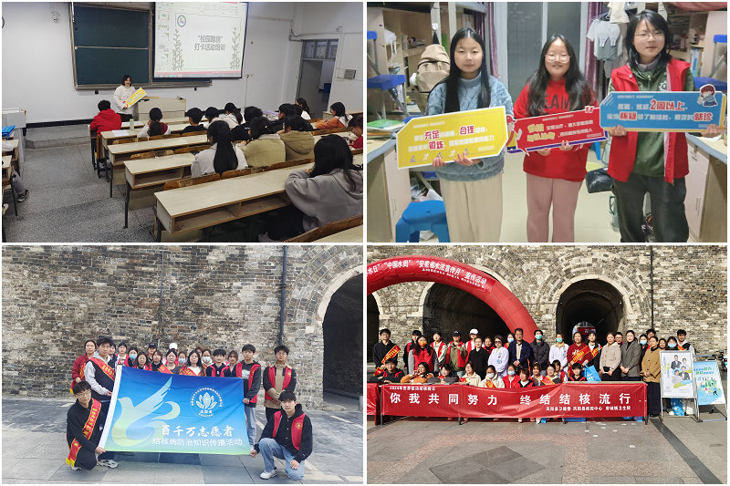 此次活动共分为三个环节,一是在全校范围内招募志愿者进行培训,凤阳校区此次共招募100余名志愿者,生命与健康科学学院团委书记姜毅向大家介绍了“安徽省结核病防治知识传播大学生志愿者团体培育计划”及相关工作的内容、学院志愿者团体近年来参与“安徽省百千万志愿者团体培育计划”所取得的成绩,志愿者的报名方式和基本要求,鼓励凤阳校区各学院学生积极加入志愿者队伍,向周围的师生、朋友宣传结核病防治知识,让更多人了解结核病的预防知识,促进结核知识的普及,增强大家自我防范、规范治疗的意识。她强调,结核病主要通过呼吸道传播,严重危害广大人民群众的身心健康,大学生是一个特殊的群体,校园是人群聚集地,相互接触较为密切和频繁,一旦发生结核疫情,如处置不及时,易造成暴发流行,因此学校结核病等传染病防治活动必不可少,大学生也应当主动了解其相关知识和防控,增强自我保护意识和能力。二是志愿者们利用双休日和休息时间,在全校开展“志愿者校园跑寝打卡传播结核病防治知识”活动,通过面对面的结防知识宣讲,邀请寝室中的同学和宣传展板来一次亲密的合影,共同努力打通校园结核病防治知识宣传“最后一公里”,全覆盖健康校园宣传“最小单元”,实现“你我共同努力 终结结核流行”的目标。三是联合凤阳县卫生健康委员会、凤阳县人民医院、府城卫生院以及凤阳县疾病预防控制中心于凤阳县明中都鼓楼广场联合举办了主题为“你我共同努力 终结结核流行”的预防结核病宣传活动,科普相关知识。过往群众纷纷与医护人员及志愿者们进行交流,领取宣传材料并积极咨询相关问题,医护人员及志愿者们耐心为大家答疑解惑。