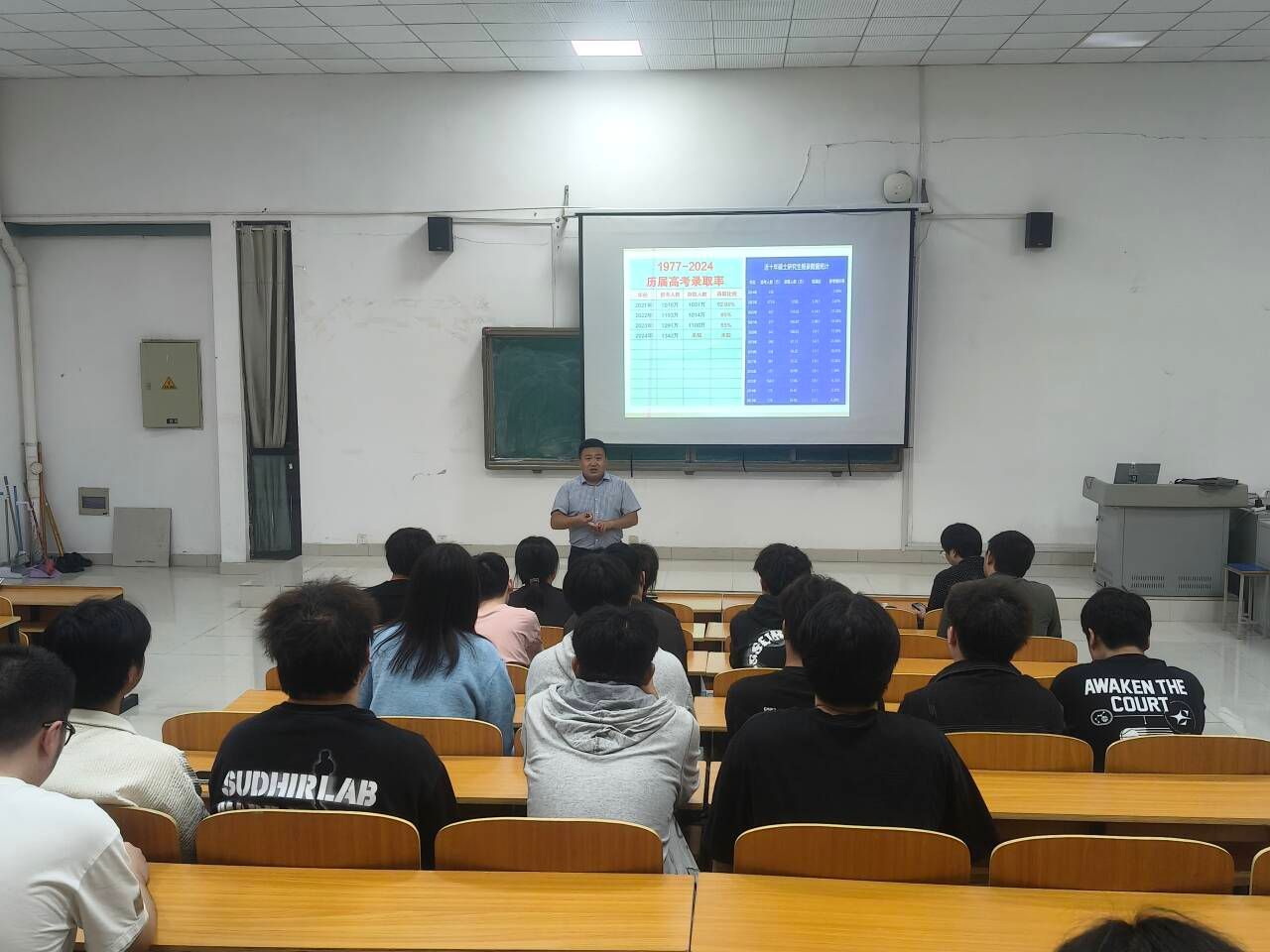 张伟从“考研是心性修炼与人生赛道拓展”展开分享了自身求学经历,指出考研不仅是学历进阶的路径,更是锤炼自律、抗压能力的“修行”——在考研备考中打磨出的心力,将成为未来应对人生挑战的“隐形竞争力”。接着,他结合本校研究生培养情况,给出备考策略上的“靶向性”建议,让同学们掌握了更加科学的备考方法。最后,他希望同学们积极备考,保持“张弛有度”的备考节奏,及时调整身心,以良好的状态备考迎考。