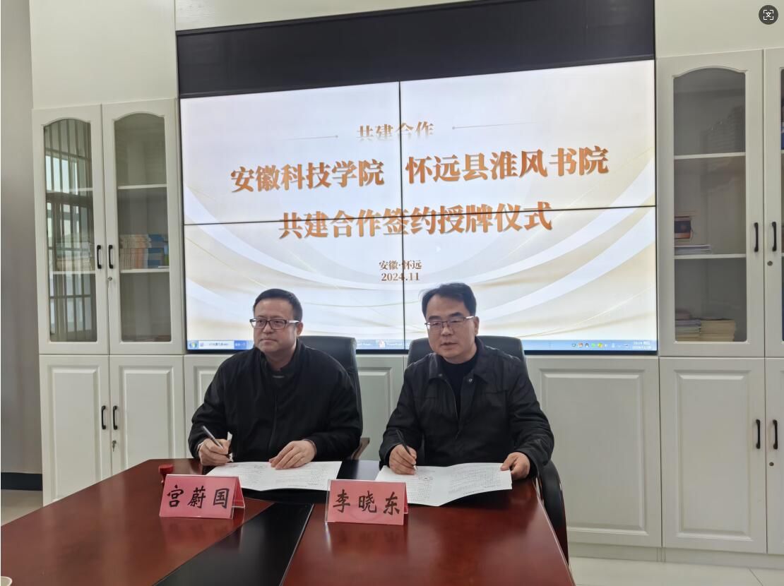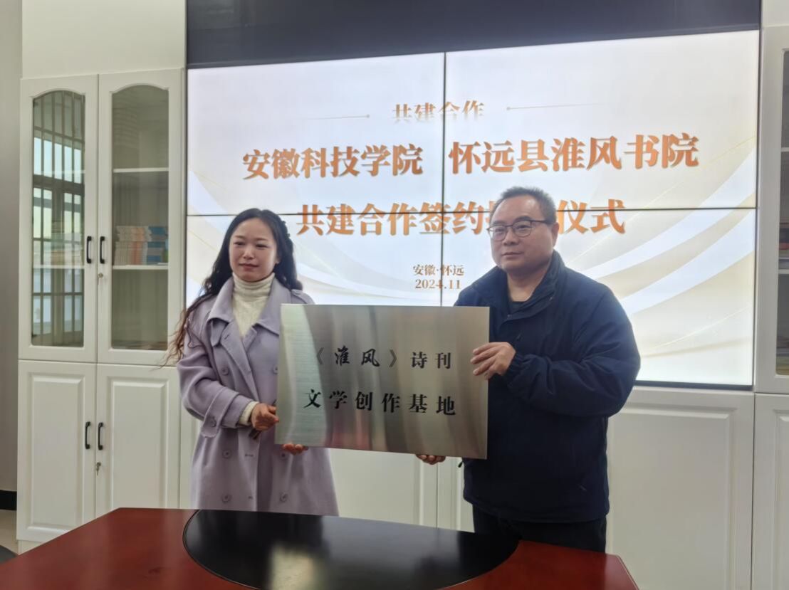 11月29日下午,我校与淮风书院在怀远县统战文化园举行共建合作签约暨授牌仪式。人文学院党委副书记、院长李晓东,正处级组织员张严政,中文系主任苏兆龙,淮风书院院长,《淮风》诗刊主编宫蔚国,编委潘洪波及怀远县地方文化学者苏文科、科普摄影家学会会长王智祥等出席本次活动。