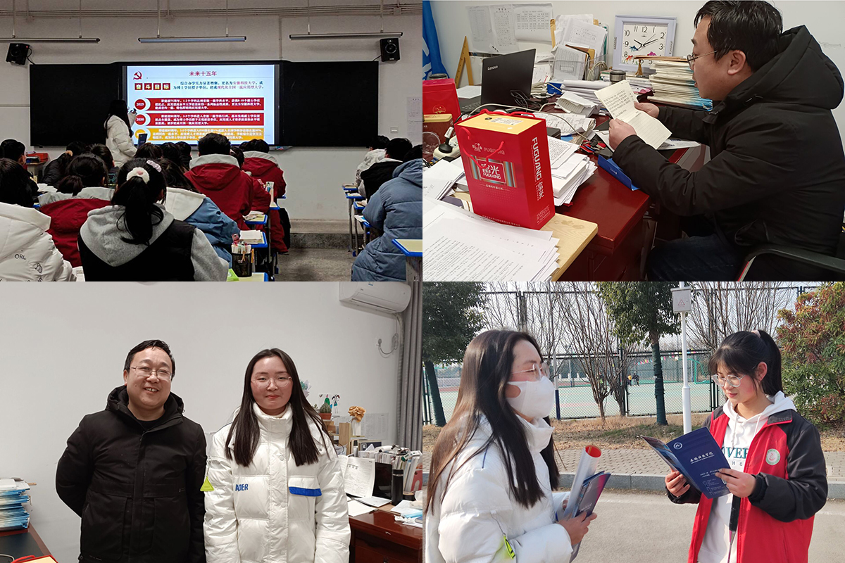 紧接着,团队成员走进高三班级开展安徽科技学院宣讲活动并发放宣传材料,以播放宣传片的形式向学弟学妹们介绍了我校发展历史、校区专业分布情况、招生政策、未来发展图景等方面内容,并向学弟学妹们展示安徽科技学院照片。同时,团队成员耐心向学弟学妹们传授学习经验和方法,就同学们所关心的大学生活经历感受做了详细解答。最后,对学弟学妹们在即将到来的高考中表示衷心的祝福。