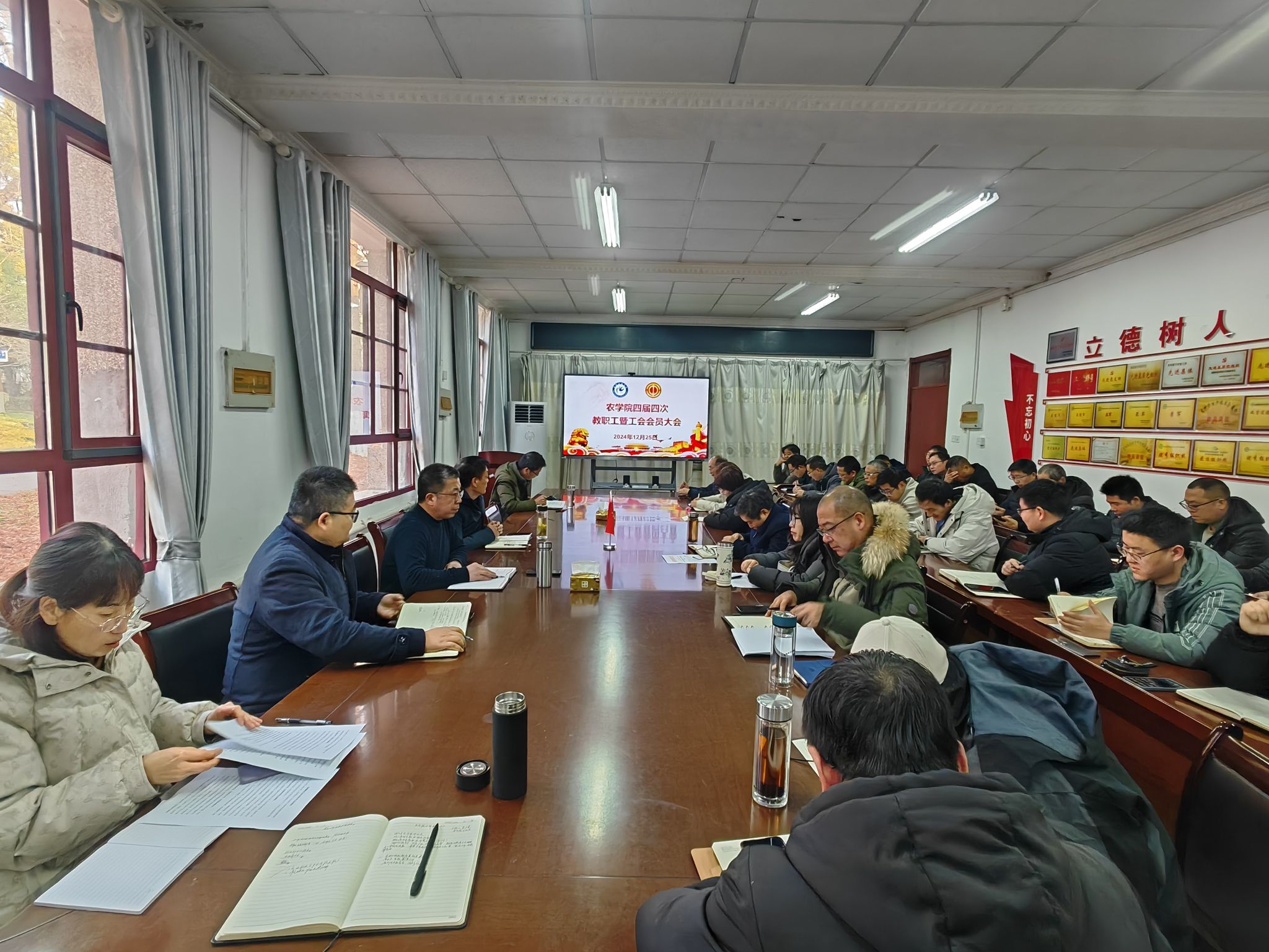 12月25日下午,农学院在学院会议室召开四届四次教职工暨工会会员大会。学院党政领导和全体教职工、工会会员参加大会。会议由农学院党委副书记、纪委书记张轶辉主持。