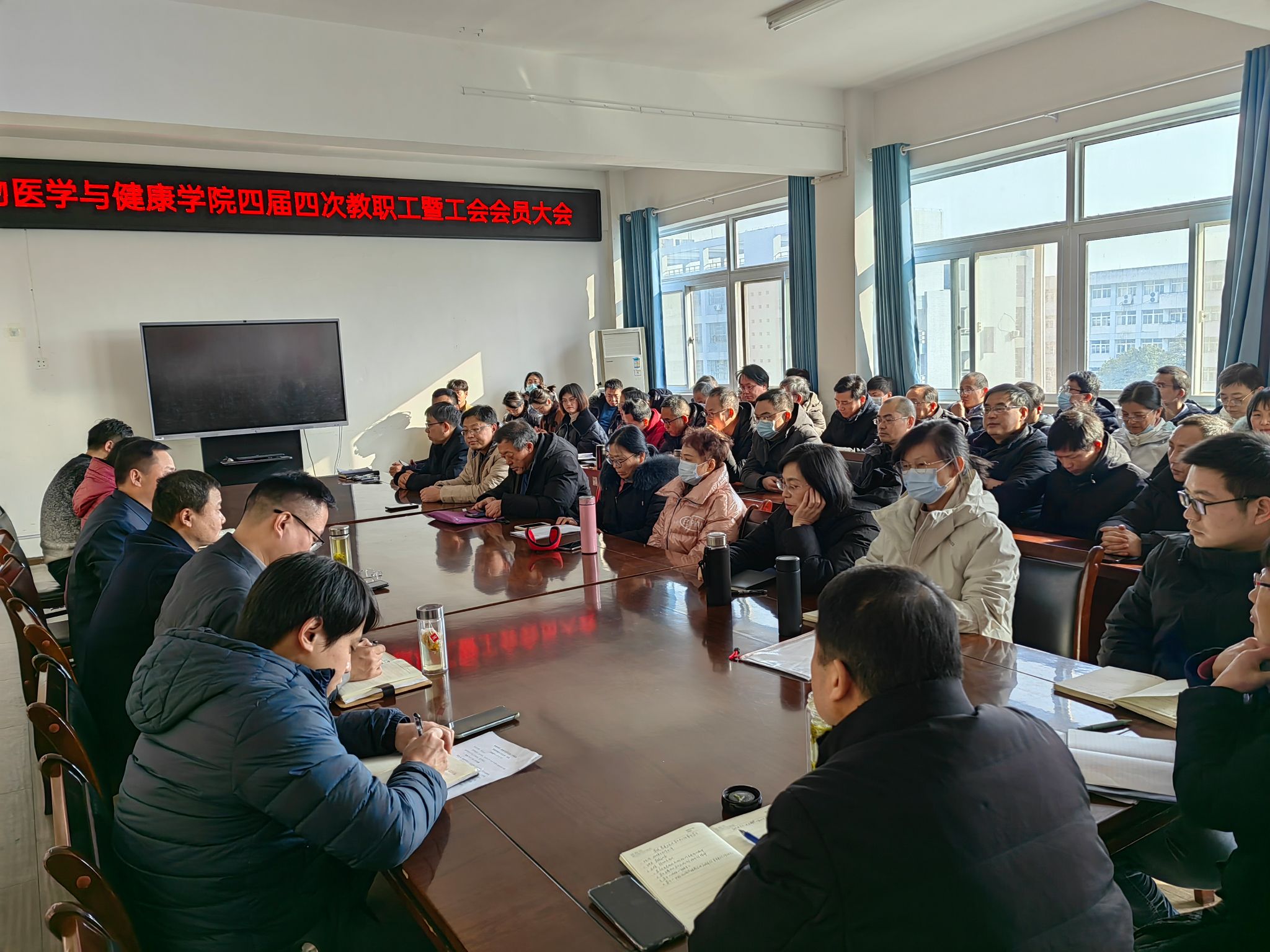 1月8日下午,生物医学与健康学院在学知楼417召开四届四次教职工暨工会会员大会。学院党政领导和工会主席出席会议,全体教职工参加会议。会议由学院党委书记张传德主持。
