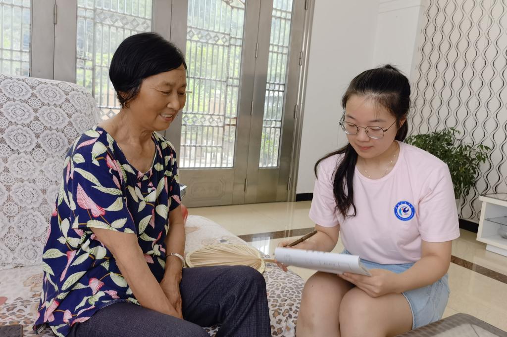 随后,成员们找到了当年参加挑河治水的老干部徐秋云,她向团队成员生动讲述了记忆中的治水故事。“上万青壮年和妇女都参加了会战,整个工地,到处都是红旗招展、锣鼓号子喧天。”徐奶奶向成员们介绍:“当年我才十八岁,一铲一铲地挖,一担一担地挑,三四百斤的推车,我们好多人一起推,不管男女老少,在这里都是英雄好汉。”如今虽已暮年,但曾经把青春奋斗融入党和人民的事业,徐奶奶认为这样的青春最靓丽、最无悔。