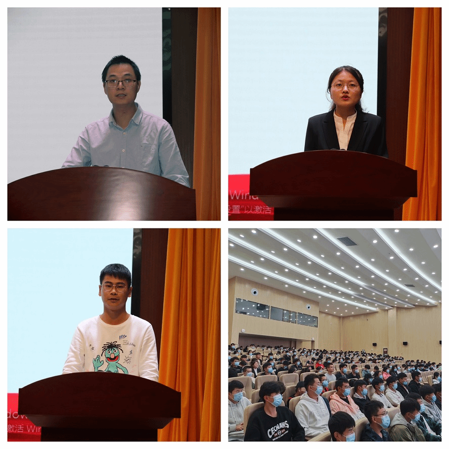 学院教师代表曹浩、院学生会主席王蝶、新生代表孙劲男先后在会上发言。(特约通讯员:王培培 审核:王振其 编辑:汤帅)