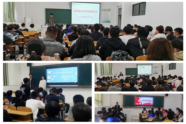 为充分发挥榜样示范作用,促进学生积极向上,10月31日下午,信息与网络工程学院举办优秀学生“责任 成才”先进事迹报告会。刘鹏宇、徐璐瑶、徐梦瑶、任思诺等十位优秀学生代表担任主讲,全体2021级新生参加报告会。