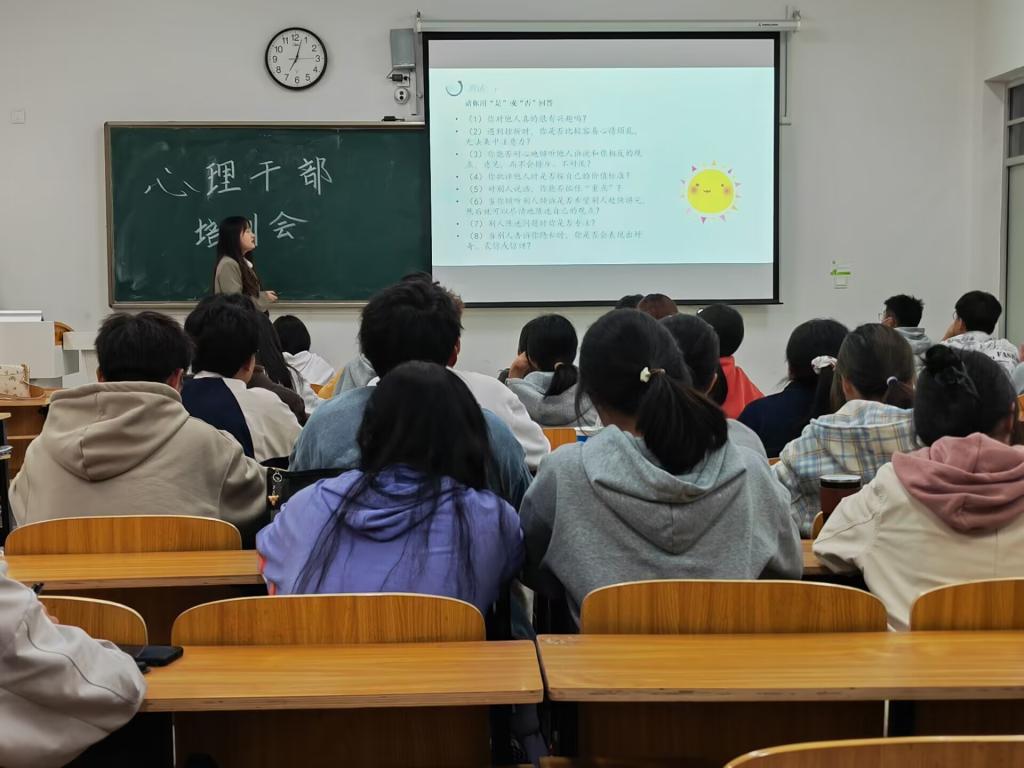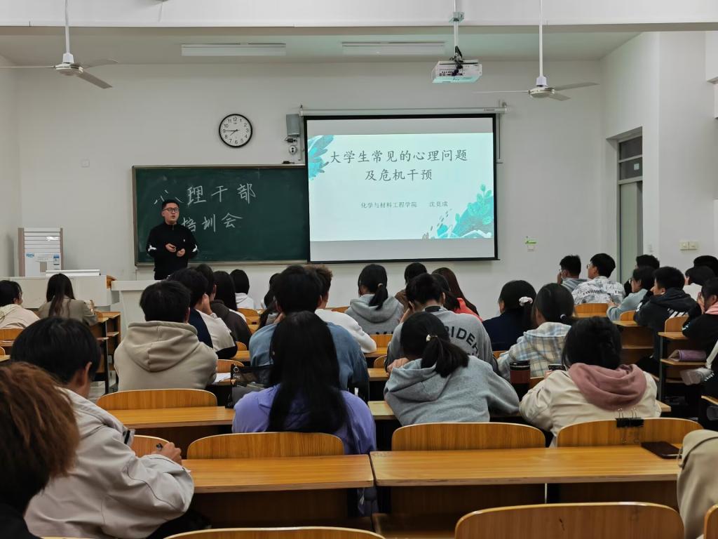 为了更加有效的关注学生的心理健康问题,提升心理干部服务学生的水平,管理学院与化学与材料工程学院于10月27日晚19点在致知楼B205召开了心理干部工作技能提升培训会,2022级全体心理委员参加会议。