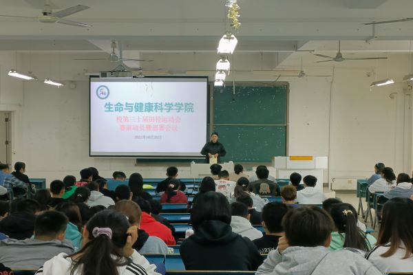 在我校第三十届田径运动会即将到来之际,为充分调动学院运动员的积极性,保证运动会期间各项工作有序进行,10月28日中午,生命与健康科学学院于新知楼B304教室召开校第三十届田径运动会赛前动员暨部署会。学院党委副书记彭丽萍、团委副书记姜毅出席本次会议。全体参赛运动员,20、21级各班班长、体育委员及学生会全体成员到场参加会议,会议由学生会主席胡康主持。