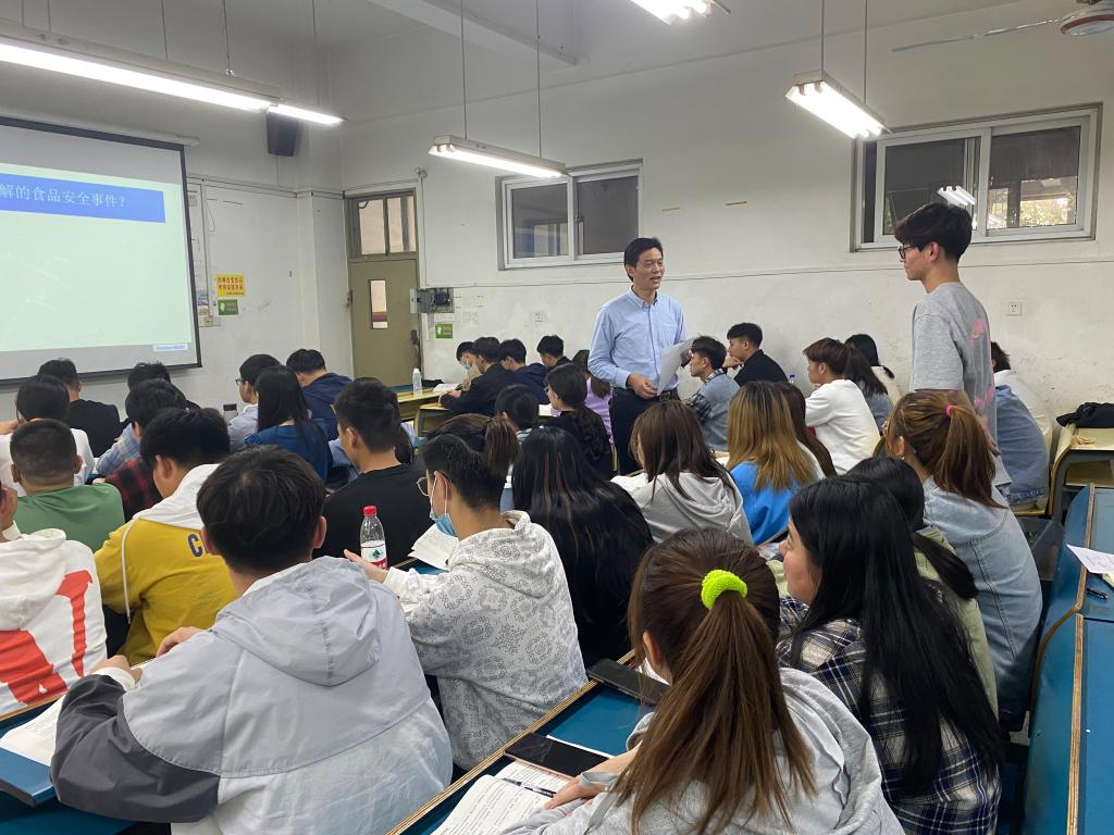 上课过程中,付光玺认真落实“三全育人”理念,深挖食品安全课程中的政治元素,将使命意识和职业道德带入课堂,引发了同学们对食品问题的深刻思考,引导学生正确认识食品安全同人民生命安全和身体健康的关系,激发学生基于自己的亲身经历,思考作为食品科学与工程专业的学生,应当从哪些维度全面完善自己,为营造共建、共享、安全的食品环境做出贡献,以期成长为中国特色社会主义事业的合格建设者和可靠接班人。(特约通讯员:时韩荣 审核:付光玺 编辑:张威)