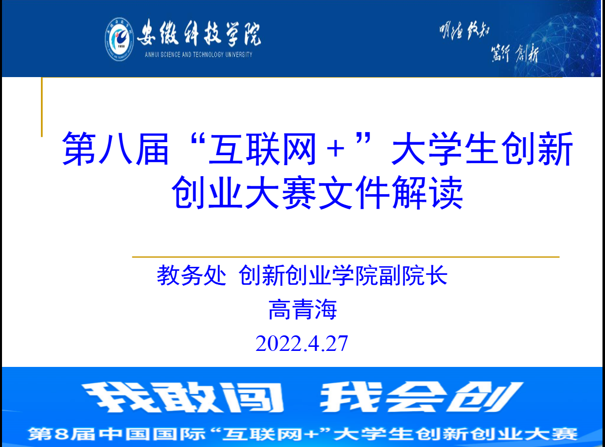 会上,高青海详细解答与会老师和同学的提问,并就有关申报技巧进行深入交流。大学生创业教育中心副主任费荣丽老师宣读了《安徽科技学院关于举办第八届“互联网+”大学生创新创业大赛的通知》。