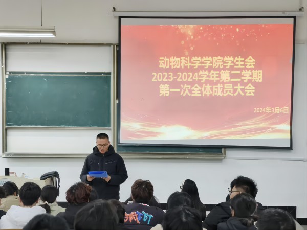 为提高新学期学生会工作效率,引导学生会干部明确工作重点和方向,提高学生会总体工作能力和服务水平,3月6日,动物科学学院学生会在求知楼A座103召开2023-2024学年第二学期第一次全体大会。学院党委副书记汤帅出席并讲话,学生会指导老师和学生会全体成员参加会议,会议由学生会执行主席李敏主持。
