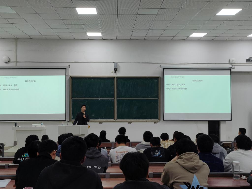 为进一步提高学院学生考研录取率,指导学生做好考研复习,为考研学子提供更好的服务。3月6日晚,电气与电子工程学院于致知楼B111组织开展了考研英语专题讲座。讲座由辅导员陈更强主持,全国考研名师贺天宇受邀主讲。学院20、21级有意向考研的学生参加了本次讲座。