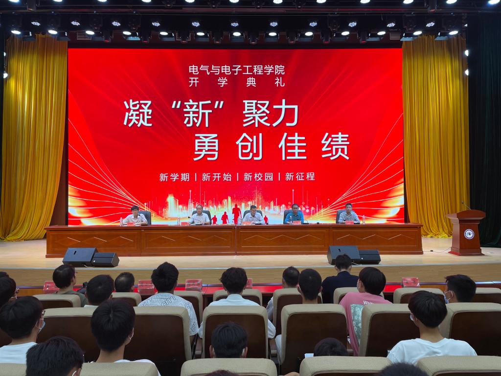 9月29日下午,电气与电子工程学院举行2022级新生开学典礼暨新生入学教育动员大会。学院党委书记骆海邦,党委副书记、院长夏显明,党委副书记、纪委书记尚磊,党委委员、副院长国海,党委委员、副院长樊晓宇出席本次会议,学院教研室主要负责人、全体辅导员及2022级新生参加此次会议。会议由骆海邦主持。