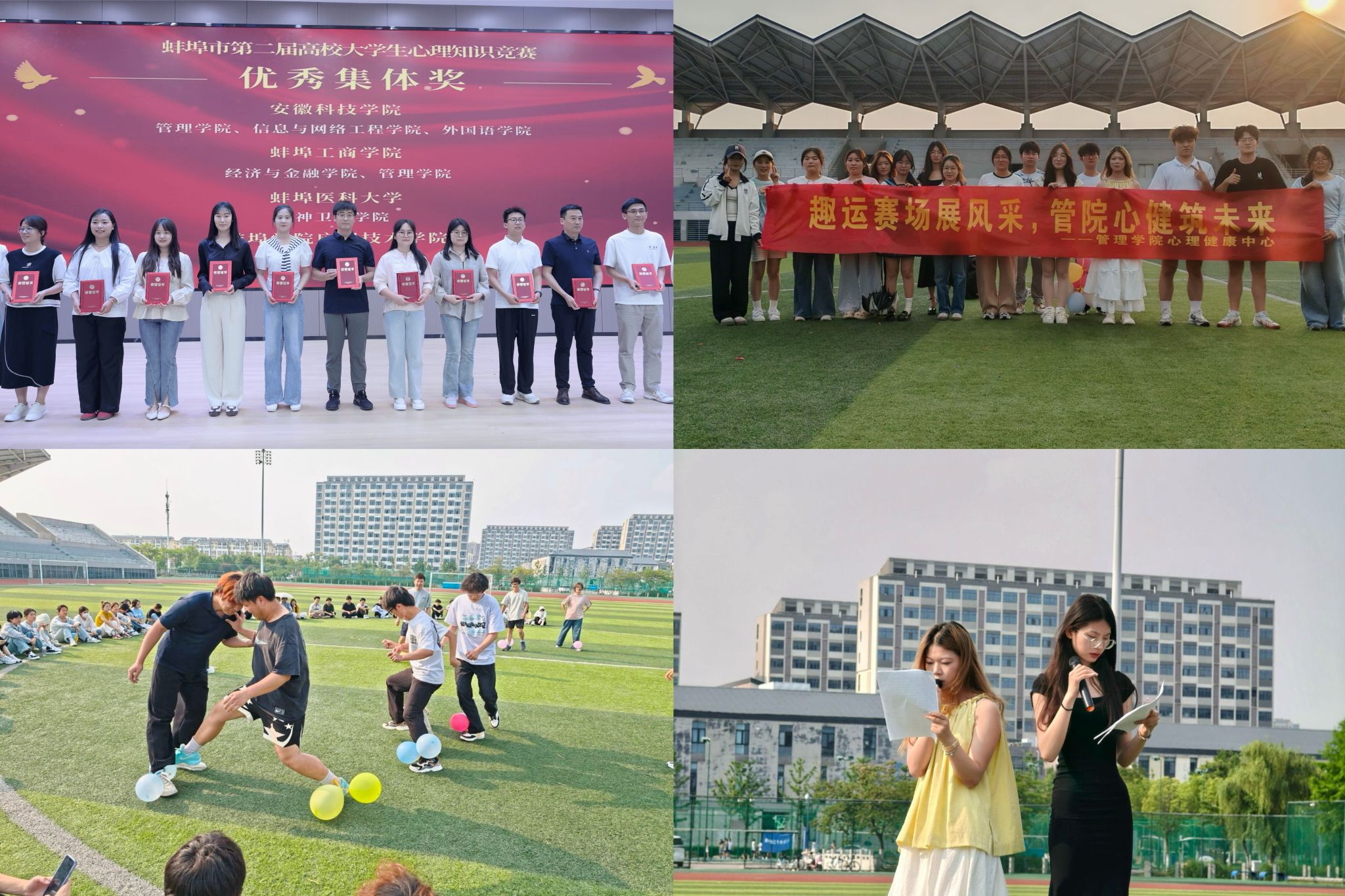 5月7日至25日,管理学院组织学院心理委员、宿舍联络员及感兴趣的学生参加第六届“爱力师”杯全国大学生心理知识竞赛和蚌埠市第二届高校心理知识竞赛,活动吸引超过350名学生踊跃报名参与线上初赛。最终学院获得蚌埠市第二届高校“知心循理、智慧同行”主题心理知识竞赛优秀集体奖。竞赛成功激发了学生学习心理健康知识的热情,营造了“关注心理、学习心理、重视心理”的浓厚氛围。