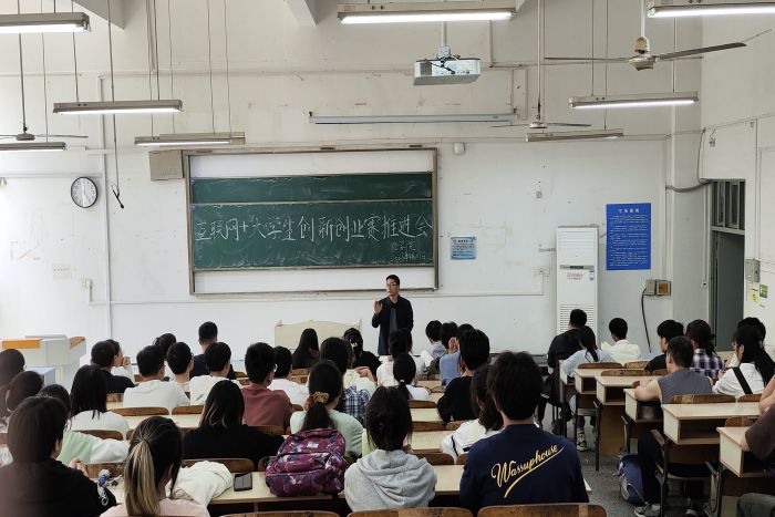 杨孝延介绍了互联网+大学生创新创业大赛的相关事项,包括比赛流程、评审标准等内容,让同学们对比赛有了更加深入的认识。