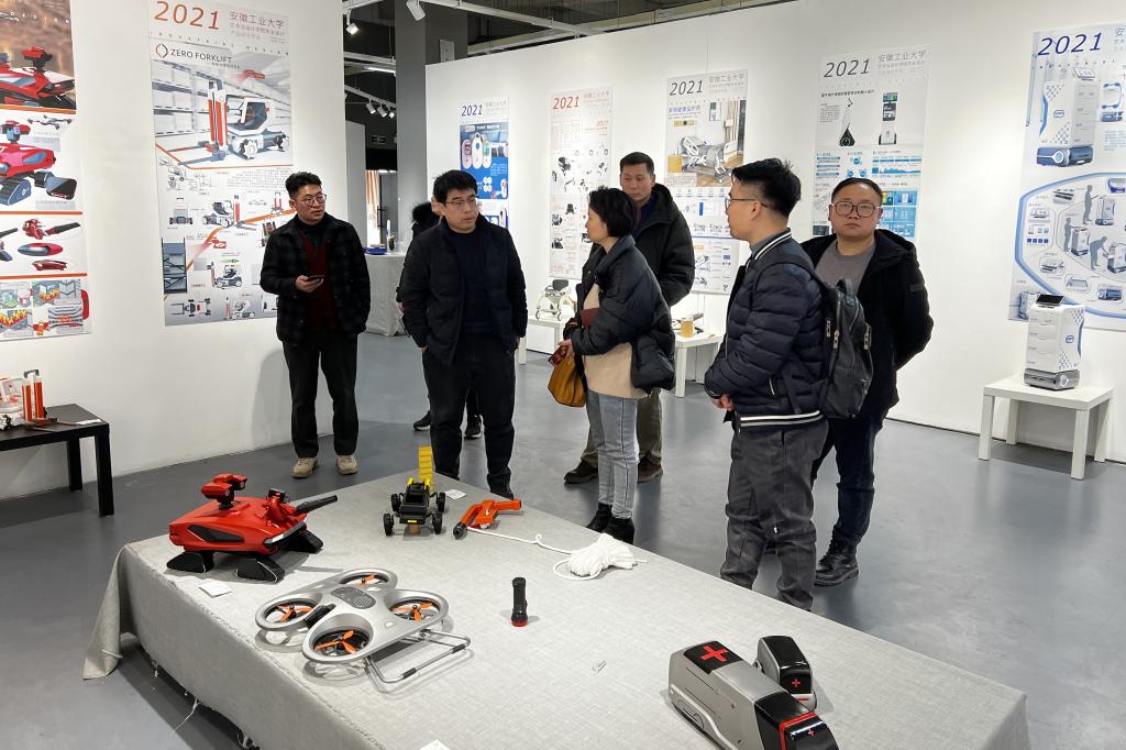 为推进工业设计专业建设,2022年3月1日,由机械设计制造工程系教工党支部委员王剑、袁枝亭和机电与机器人专业学生党支部委员邱杰、工业设计专业骨干教师李会芳组成的工业设计教学团队赴安徽工业大学学习交流专业建设工作,受到安徽工业大学艺术与设计学院院长汪海波、工业设计系主任娄明和实验室主任王乐琼等的热情接待。