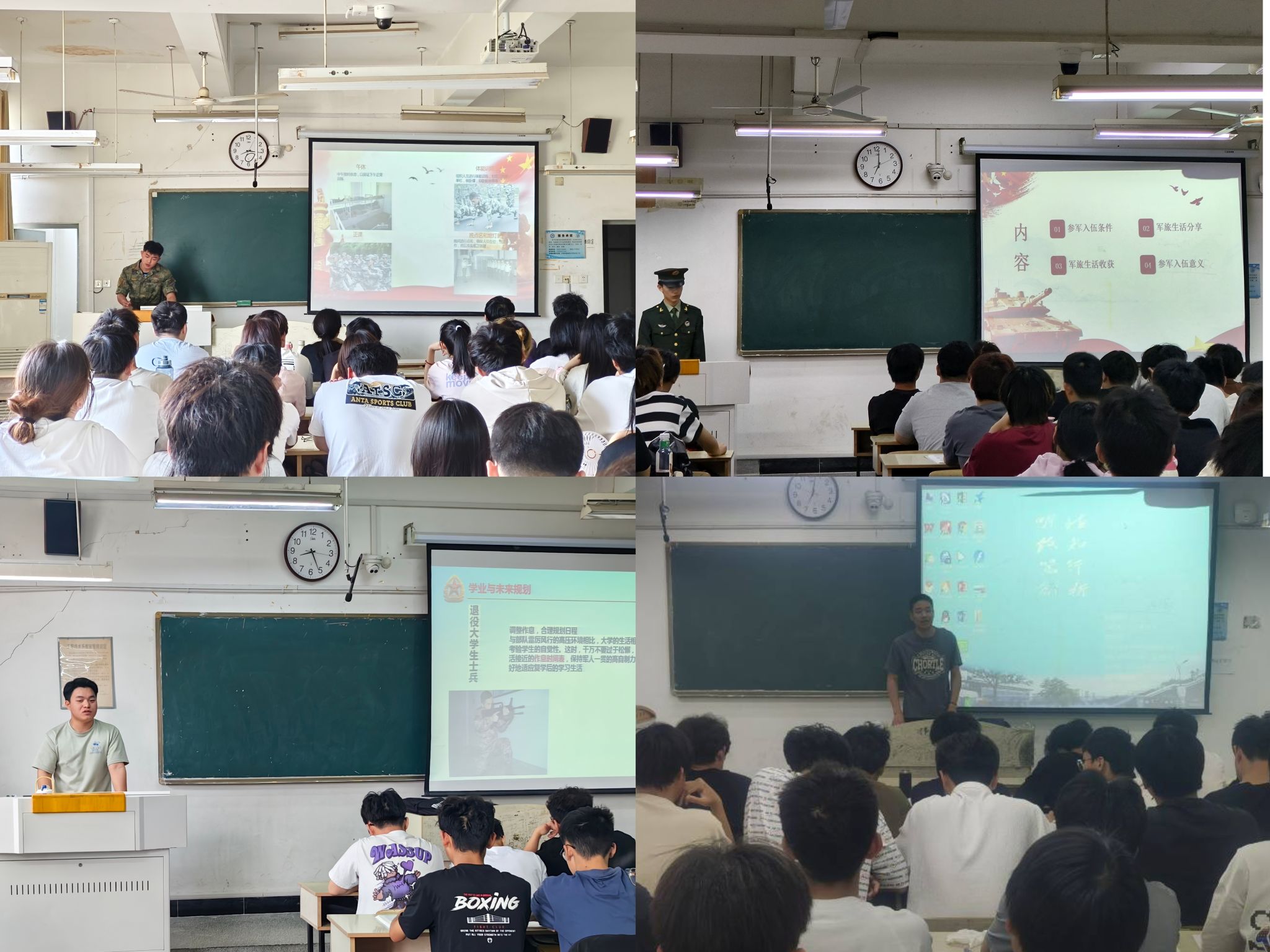 为扎实做好应征入伍政策宣传,号召更多青年学生应征入伍,以实际行动献身国防和报效祖国,5月8日至20日,机械工程学院组织“迷彩班”学员、退役大学生韩顺、程永吉、曹状、李文科等分别走进由姚迪、孟凡生、蔡炜煜、朱香银老师授课的《大学生军事理论》课堂分享入伍经历活动。