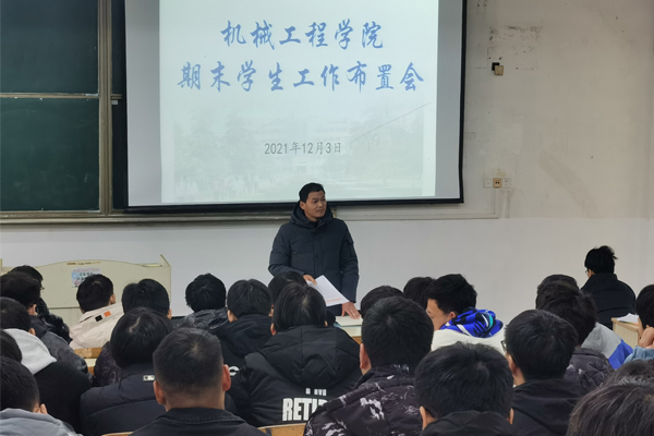 根据《机械工程学院关于切实提升学风建设成效的实施方案》《机械工程学院关于进一步加强学生宿舍安全文明卫生建设实施方案》等有关文件要求,为切实做好期末学生工作,2021年12月8日,机械工程学院在求知楼A101召开期末学生工作布置会,会议由党委副书记、纪委书记张程主持,辅导员邱杰、孟凡生和各班级班长、团支书参加会议。