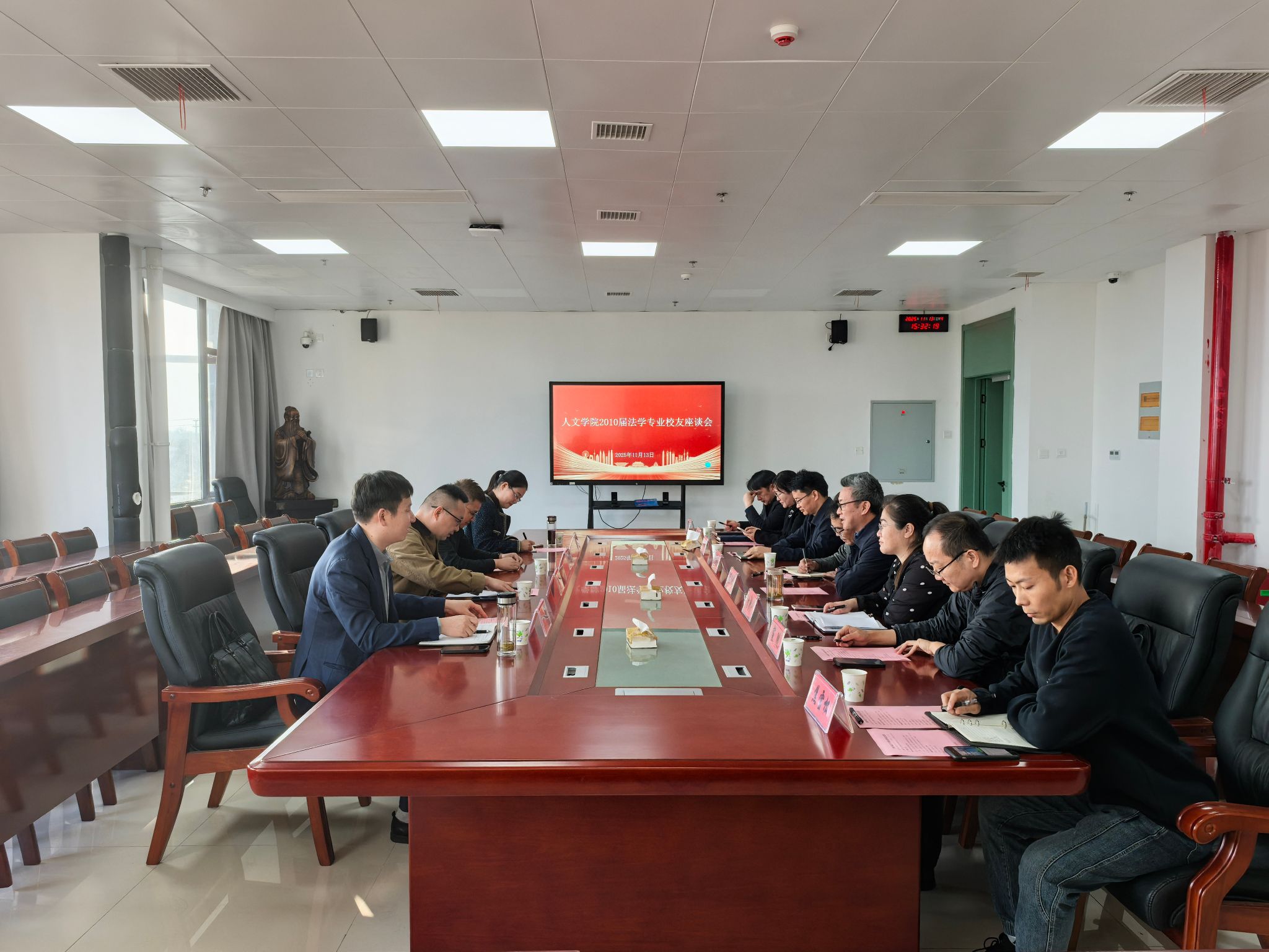 11月13日下午,人文学院313会议室内暖意融融,2010届法学专业校友代表跨越十五载重返母校,与学院党政领导、恩师代表欢聚一堂、座谈交流,共忆青春时光、共话发展蓝图。座谈会由学院正处级组织员张严政主持。