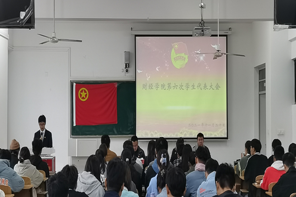 11月20日下午,财经学院第六次学生代表大会在致知楼C208教室顺利召开。财经学院党委书记杜小明,院团委书记、纪委副书记薛枫,学生会秘书长、辅导员朱中军,辅导员季昌文出席会议。来自学院各学生组织和班级的学生代表参加会议。会议由朱中军主持。