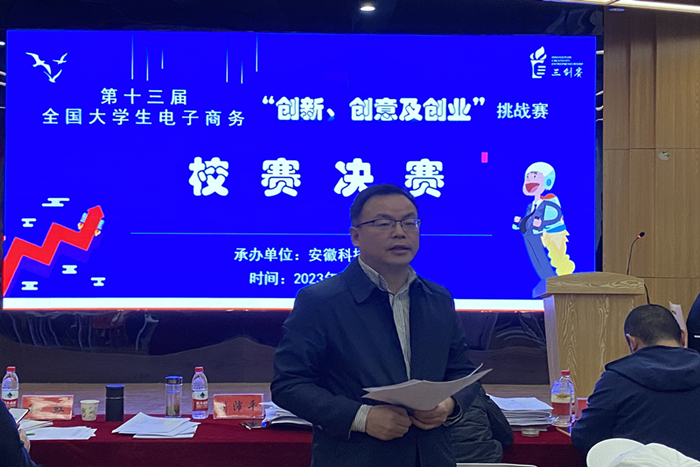 为更好地培养大学生创新思维、创业意识和创造能力,4月8日下午,第十三届全国大学生电子商务“创新、创意及创业”挑战赛(以下简称“三创赛”)安徽科技学院校赛总决赛在龙湖校区众创空间路演厅顺利举行。此次比赛邀请了刘沛平、孙虹、王唤明、潘应浩、朱琰等5名专家担任评委。