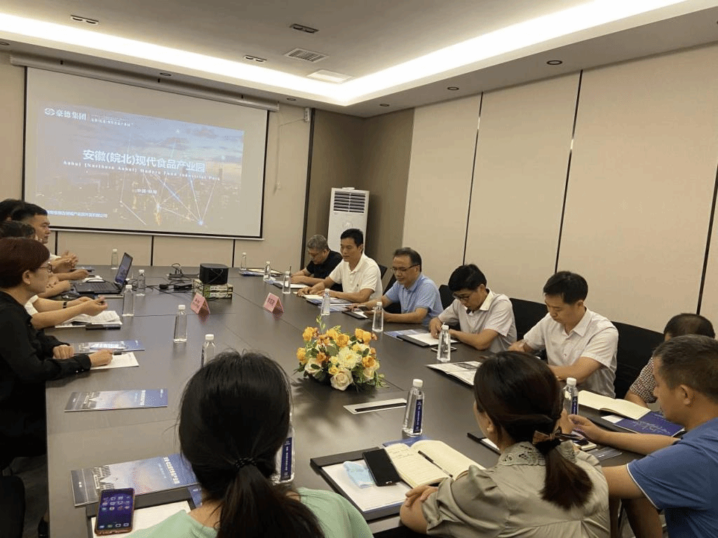 蚌埠豪德万创城产业园开发有限公司是该园区的设计建设单位,香港豪德集团常务副总经理常军对安徽科技学院和蚌埠市科技局的到访表示欢迎,希望蚌埠市科技局、安徽科技学院与安徽(皖北)现代食品产业园通过多层面合作,发挥各自优势为蚌埠食品产业发展作出更多更大贡献。园区品牌推广中心经理王星懿介绍了该园区的建设规划及建设进展情况。
