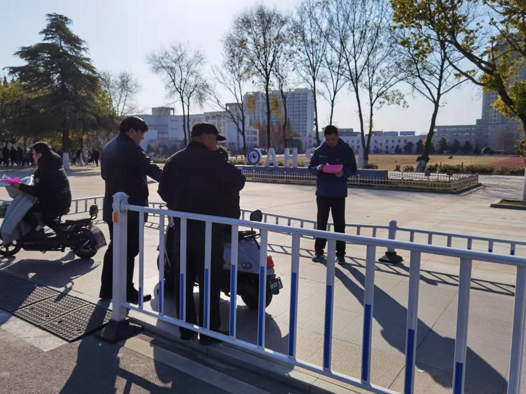 为了进一步增强广大师生的交通安全法规意识和安全文明意识,教育学生文明行车、拒绝违章,防止交通事故,创建平安校园,12月2日上午,保卫处党支部在凤阳东校区西门小广场开展“多走路,少骑车,共建平安校园”交通安全宣传主题党日活动。保卫处党支部全体党员、洪武路派出所、校卫队等参加了此次活动。