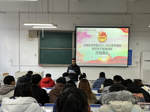 为进一步加强学生干部队伍建设和凝聚力,提高团学干部的思想政治素质、工作能力和创新能力,12月1日下午,动物科学学院2021—2022学年团校暨学生干部培训班在求知楼A106室举行。学院党委书记姚勇,党委副书记、纪委书记汤帅,党政办公室主任、团委书记李焱,辅导员胡文丽、范雨梦出席培训班。
