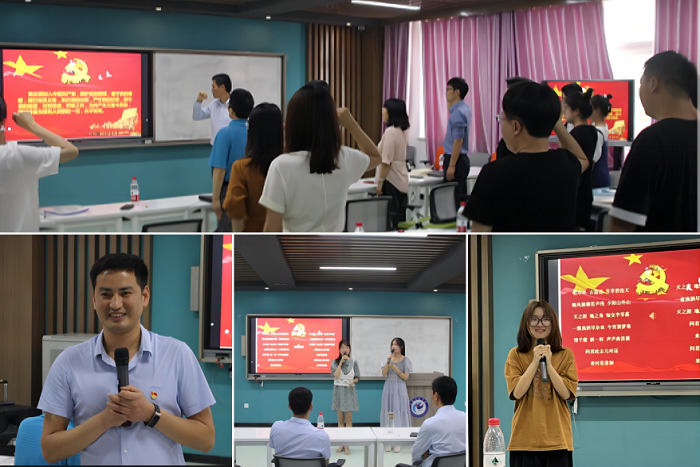 活动中,师生党员共同观看了党课视频《两张党证》,进一步坚定了同学们心中的理想信念;参会教师党员为各位党员佩戴了党员徽章,强化了新入党同学的身份意识;付光玺带领师生重温入党誓词,追忆入党初心。“政治生日快乐!”参会党委委员给各位党员颁发“政治生日”卡,并向各位党员同学送上了真挚的祝福,提出了廉政要求。现场,毕业生党员代表郭宝仪和新发展党员代表阮芹悦饱含深情地合唱了《我和我的祖国》《送别》两首歌曲。同时,各位新发展党员还为毕业生党员精心准备了写满临别祝福的纪念贺卡,共同表达了对党和国家的深深祝福和对毕业生党员的美好祝愿。
