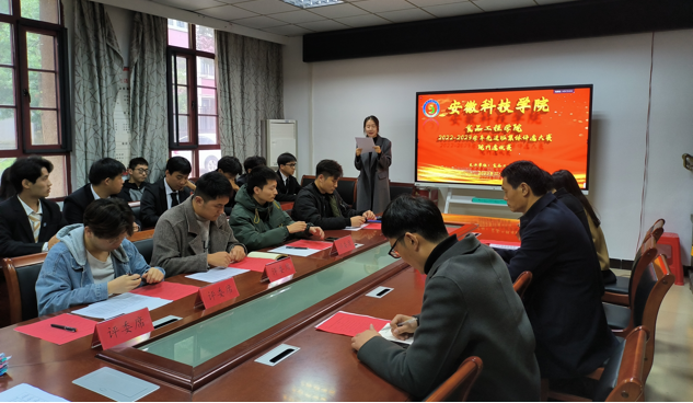 为彰显优秀班集体奋发有为、积极向上的青春风采,展现学院党建带团建工作成效,11月22日下午,食品工程学院在学院会议室举行了先进班集体评选会。学院党委书记付光玺到会指导。党委副书记、纪委书记王广良,团委书记赵传磊,专职辅导员吴玘,参评班级班长、学生干部代表参会。院团委副书记戚国庆,学生会主席团成员王锦云、朱佳佳担任评委。评选会由薛紫琪主持。