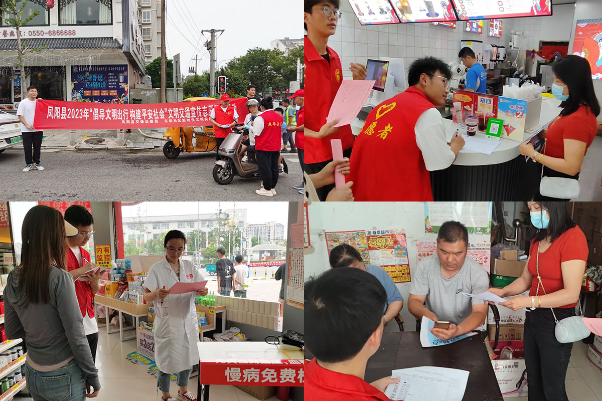 为优化绿色出行结构,全方位提升居民的文明素养,提高在校生的社会实践和服务能力。2023年7月12日,机械工程学院分团委组织20名志愿者前往凤阳县东华社区,开展了以“宣传文明出行”为主题的社区实践志愿服务活动。