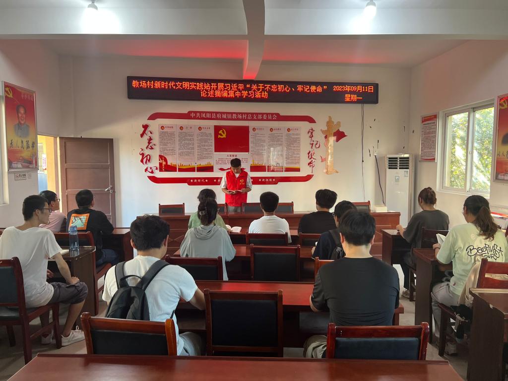 为深入学习宣传贯彻习近平新时代中国特色社会主义思想,培养在校生谦虚谨慎、艰苦奋斗的优良品质。2023年9月6日,机械工程学院分团委组织20名志愿者前往凤阳县教场村新时代文明实践站,开展了以“不忘初心、牢记使命”为主题的社区实践活动。