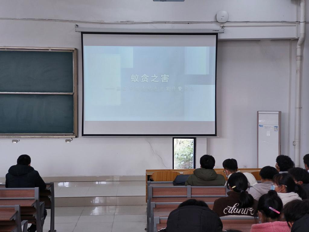 开班典礼后,与会学生干部共同观看了廉政警示教育片《蚁贪之害》,通过观影告诫大家要坚守全心全意为同学服务初心,时刻做到严于律己,明明白白做人、清清楚楚做事,时刻绷紧廉洁自律这根弦,勤奋踏实做好本职工作。(特约通讯员:陈凯 摄影:牛瑞瑞 审核:韦乃学 编辑:张威)