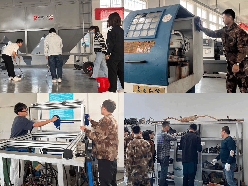 根据学院统一安排,力行楼由司志远、董文彬两位老师带队。活动开始后,师生们纷纷带上手套,男生们或拆装仪器,或你搬我抬;女生们也不甘示弱,有针对性地对实验桌椅板凳等物品做好搬运前的保护措施,劳动现场一片热火朝天。与此同时,工程训练中心更是一派热闹景象,同学们在范新波、洪腾蛟两位老师的带领下,将铁架、汽车配件、玻璃柜等物品装上卡车转运到力行楼,将故障诊断设备搬迁至工训中心一体化实训区,农机设备、铸造设备等也陆续搬到了“新家”。