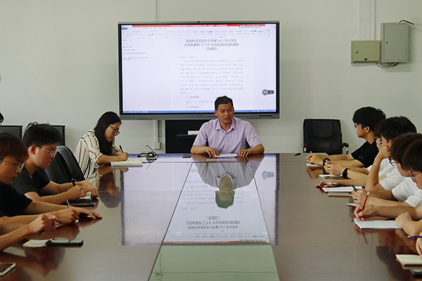 为深入学习宣传贯彻习近平新时代中国特色社会主义思想和党的十九届六中全会精神,贯彻落实习近平总书记关于青年工作的重要思想,深入学习习近平总书记在庆祝中国共产主义青年团成立100周年大会上的重要讲话精神,引导和帮助广大青年学生上好与现实相结合的“大思政课”,在社会课堂中“受教育、长才干、作贡献”,坚定信念听党话、跟党走,迎接党的二十大胜利召开,根据疫情防控常态化形势,机械工程学院根据《安徽科技学院关于开展2022年大学生志愿者暑期“三下乡”社会实践活动的通知(预通知)》文件要求,于6月8日在学院会议室召开机械工程学院2022年暑期“三下乡”社会实践活动布置会议。机械工程学院党委副书记、纪委书记张程,学院团委副书记谭博文,学院全体非毕业班团支书、学院青年志愿者协会学生干部参加此次会议,本次会议由谭博文主持。