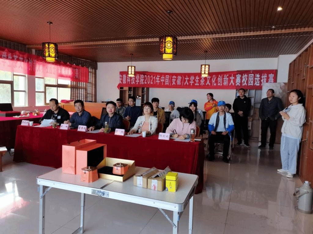 本次选拔赛面向安徽科技学院全体在校生,设置团体赛与个人赛两类赛事,创意茶艺表演评委们根据参赛队伍的比赛时间、创新性、礼仪仪容仪表、茶艺展示、茶汤质量、文本及解说六个方面进行打分评比。最终由这两支优秀队伍代表安徽科技学院参加即将举办的2021年中国(安徽)大学生茶文化创新大赛。