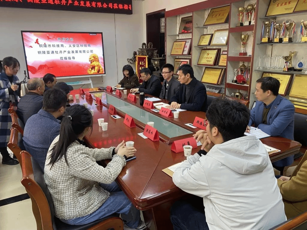 为进一步深化校企合作,提升产教融合,实现优势互补,结合省级科技特派团工作指导,11月25日,铜陵市科技局调研员张燕、义安区科技局副局长王立新、义安区科技局农村与社会发展科科长郑佳、铜陵亚通牡丹产业发展有限公司董事长孙后田一行赴我校食品工程学院进行交流指导,食品工程学院党委书记付光玺、副院长翟立公、副院长郑海波、研究生党支部书记桑宏庆、义安区健康食品产业(凤丹)科技特派团”团长杨剑婷及团员魏照辉、刘勇等相关老师热情接待并进行交流座谈,双方随后隆重举行义安区健康食品产业(凤丹)科技特派团签约及揭牌仪式。