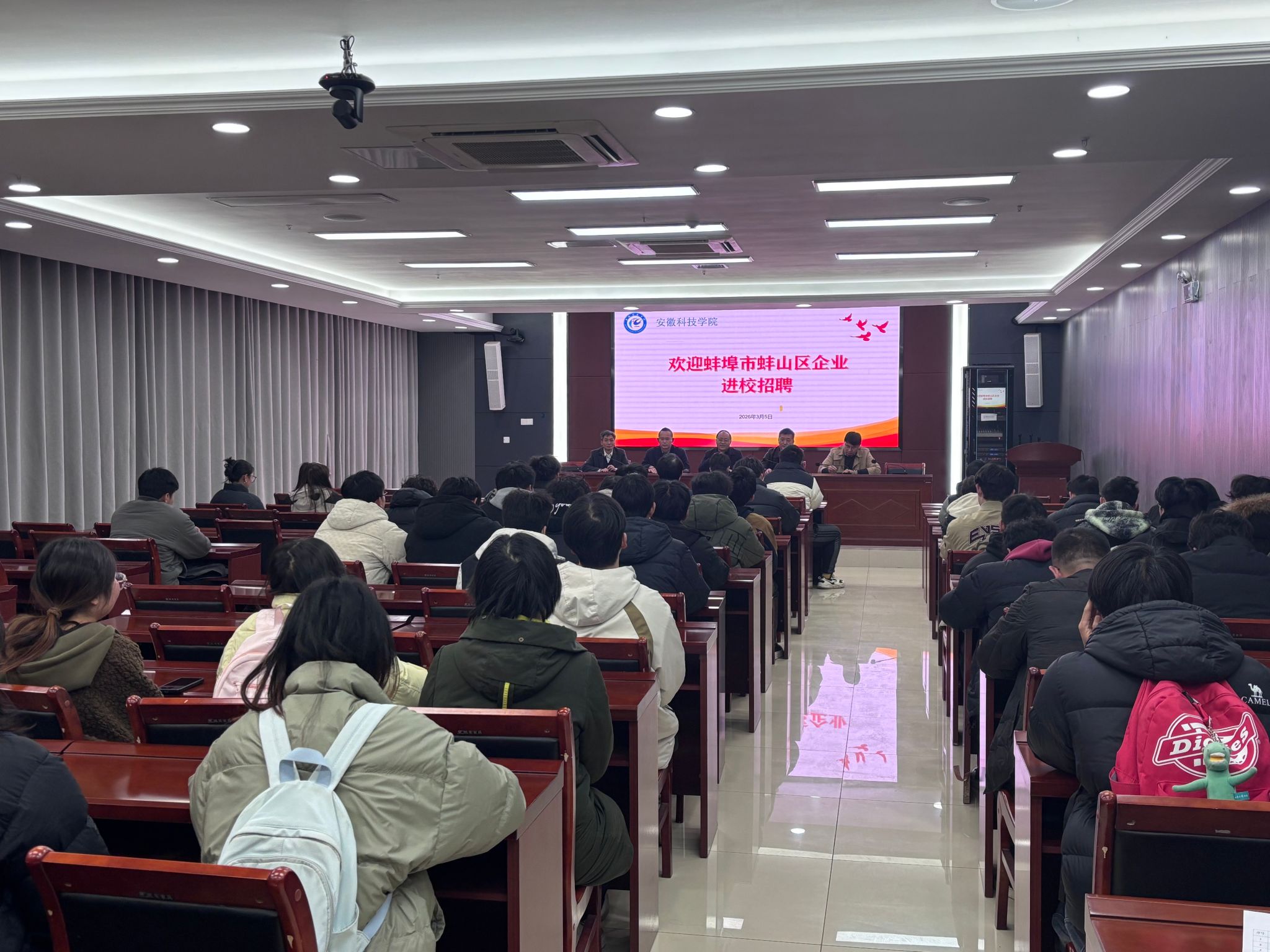 活动伊始,我校杰出校友常俊回顾了自己在校的求学时光,分享了从校园步入职场,在地方党建和组织工作领域深耕多年的经验。他勉励学弟学妹们,在校要专注专业学习,多参与实践活动,提升综合能力;求职时要找准定位,将个人发展与国家需求、地方发展相结合。他表示,此次牵头推动蚌山区政府、黄庄街道与苏州香农科技的对接,就是希望以地方组织部门为纽带,打通高校人才培养与企业需求、地方发展之间的壁垒,为母校学子创造更多优质就业机会。周雷阐述了校地企合作的重要价值,他表示地方将持续搭建校企对接平台,实现“人才引得来、留得住、用得好”的良性循环。