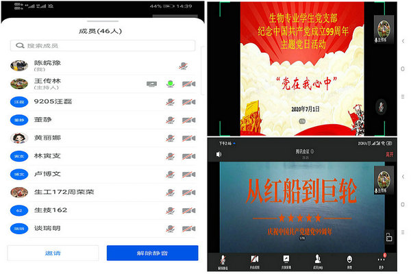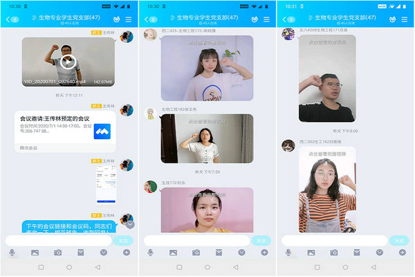 党支部全体党员还自行观看红色电影《建党伟业》,并易班群组中发表观看照片和观后感悟;在支部书记带领下,每一位党员也拍摄了一段重温入党誓词视频,并发布到腾讯QQ群中。