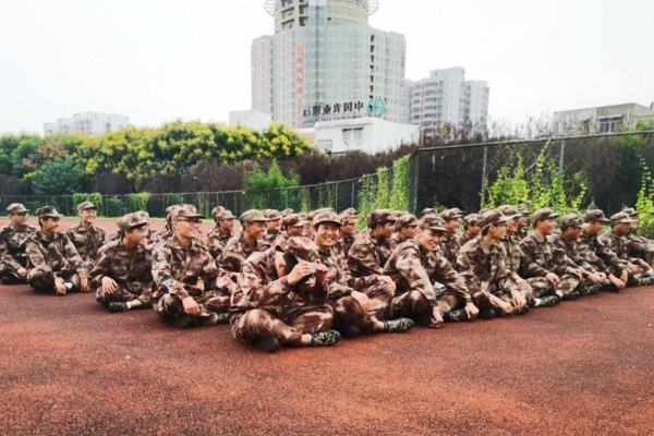 一踏入操场,就可以看到一群身穿迷彩服的活力青年整齐的站着军姿,喊着响亮的口号,唱着激昂的军歌。“齐步——走”教官铿锵有力的声音在操场上回荡。
