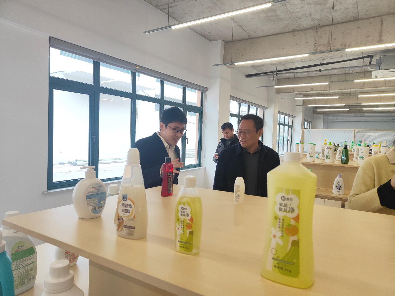 揭牌仪式结束后,在园区及公司领导的陪同下,杜传来院长一行先后到产品展示厅、生产车间、实验室等进行实地参观考察。此次挂牌签约,是安徽科技学院食品工程学院与安徽华粮液国粹生物药业科技有限公司合作刚刚获批立项滁州市科技计划项目“滁菊多糖免疫调节配制酒关键技术研发与示范”之后,主动对接滁州食品企业、科技赋能滁菊产业发展,所取得的又一产学研合作成果,通过此次考察交流,校企双方加深了相互了解,深化了合作基础,拓宽了合作思路,明确了合作方向,为进一步创新校企合作新模式,拓展校企合作新路径奠定了基础。(特约通讯员:黄瑶 摄影:陈春旭 审核:杜传来 编辑:张威)