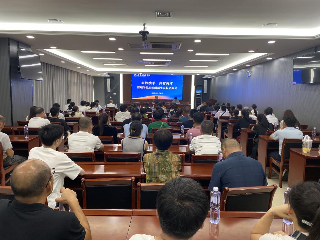为增强家校沟通,汇聚育人合力,助力学生全面发展,9月6日下午,管理学院于西辅楼111会议室召开“家校携手 共育英才”2023级新生家长见面会。学院党政领导出席会议,全体新生辅导员及80余名新生家长参加了见面会。
