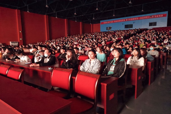 为庆祝中国共产党成立100周年,深入开展“永远跟党走”学生党史学习教育,4月16日晚,外国语学院和人文学院共计一千余名学生在校大学生活动中心共同观看红色经典影片《建党伟业》。外国语学院党委副书记张海亮、人文学院党委副书记李沙娜、外国语学院党政办主任陈慧中、人文学院辅导员焦雪松等老师出席活动。