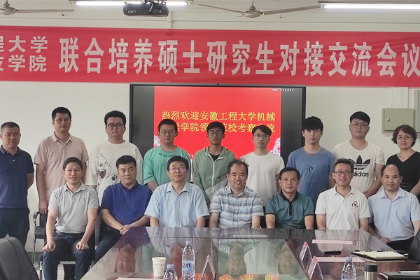 7月4日,安徽工程大学机械工程学院党委书记伊长文、副院长王建平、硕士生导师王建彬、研究生秘书吴璐璐和6名安徽工程大学-安徽科技学院联合培养的硕士研究生一行10人,来我校参加对接交流会议。机械工程学院党委书记、院长陈丰主持对接交流会议,研究生处处长张春雨,机械工程学院组织员张严政、副院长乔印虎、研究生秘书郭纯,研究生处秘书马晓辉参加座谈交流。