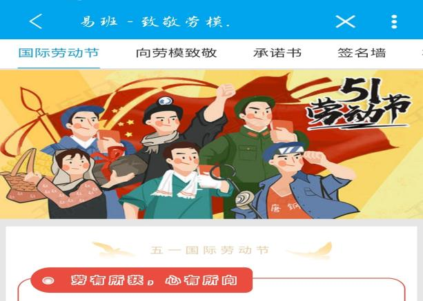 本次活动使用易班APP线上推出轻应用供同学们签署“弘扬劳模精神”承诺书,并在线下申请PU学时签到。在轻应用中同学们可以清晰地看到五一国际劳动节的由来、意义、习俗等。让同学们真正了解劳动节的意义,更好地弘扬劳模精神和向劳模致敬。致敬劳动模范,就是要学习他们忠于人民、挚爱事业的坚定信念;致敬劳动模范,就是要学习他们奋勇争先、争创一流的进取意识;致敬劳动模范,就是要学习他们勇于钻研、无私奉献的优秀品质。同学们积极参与线上承诺书签署活动,用自身行动诠释当代大学生的对劳模的敬意。同时同学们也更加明白劳动铸就辉煌,劳动塑造人生。生活的美好,社会的进步,源于平凡艰辛的劳动。没有劳动创造,就没有中国的今天,也不会有中国的明天。