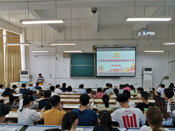 根据《中共安徽科技学院委员会关于做好基层党委(党总支)换届工作的通知》和《中共安徽科技学院委员会组织部关于进一步做好基层党委(党总支)换届选举工作的通知》精神,6月23日下午,农学院在求知楼A104室成功召开党委换届暨纪委成立大会。农学院全体师生党员参加大会。会议由农学院党委副书记、院长崔广荣主持。